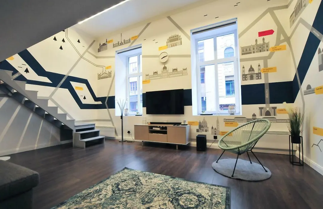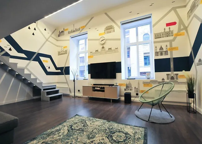 Das Apartment liegt im Stadtteil 07. Erzsébetváros in 500 Meter Entfernung zum Szimpla Kert. Die Matthiaskirche ist in 10 Fahrminuten Entfernung von den 2-Zimmer-Apartments gelegen.